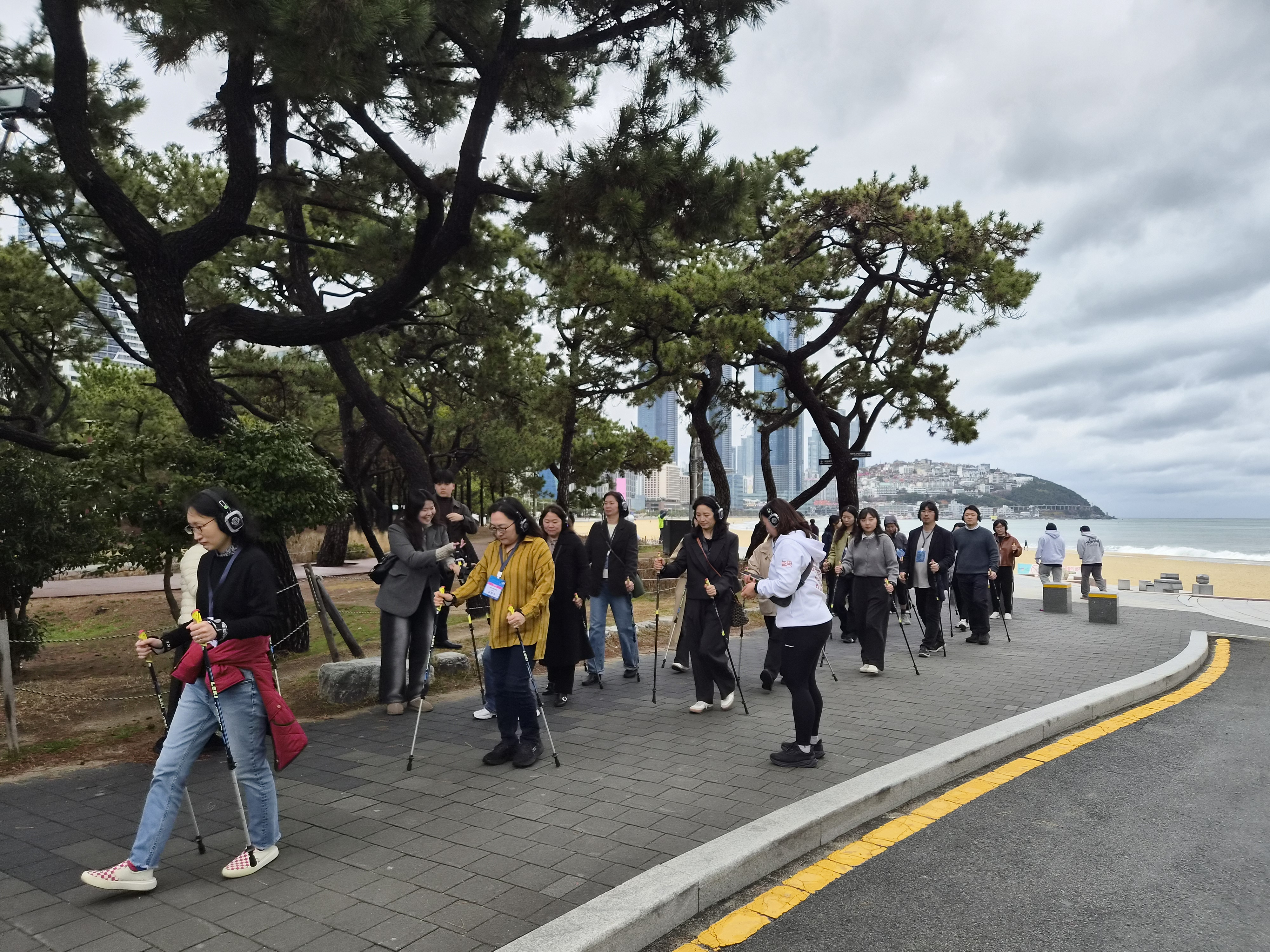 해운대 일대에서 진행된 웰니스 MICE 테마 팸투어(노르딕 워킹) 모습