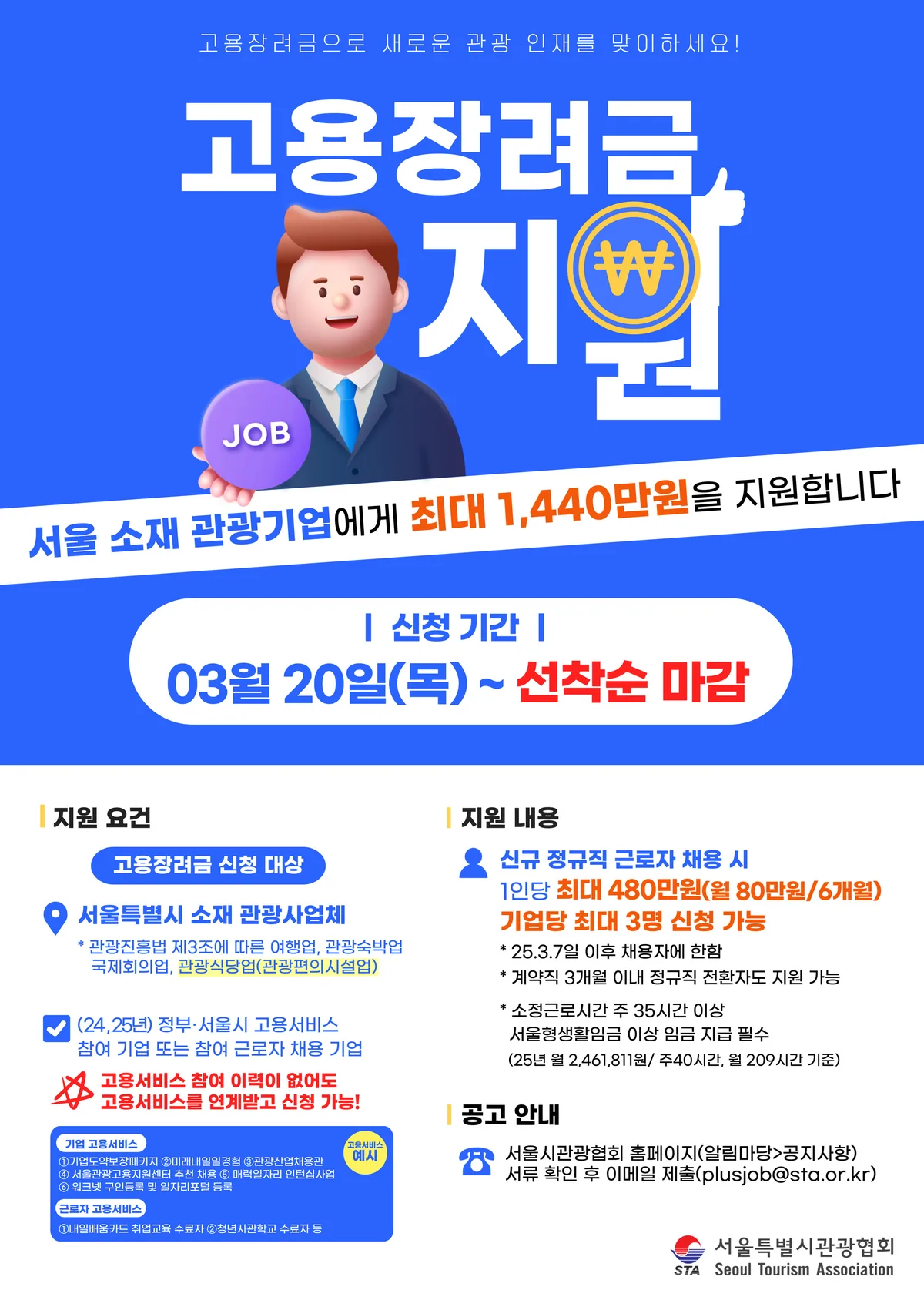 서울특별시관광협회(회장 조태숙)는 서울 관광산업의 지속적인 성장과 일자리 창출을 위해 ‘2025년 서울형 관광업 플러스 일자리’사업을 추진한다.
