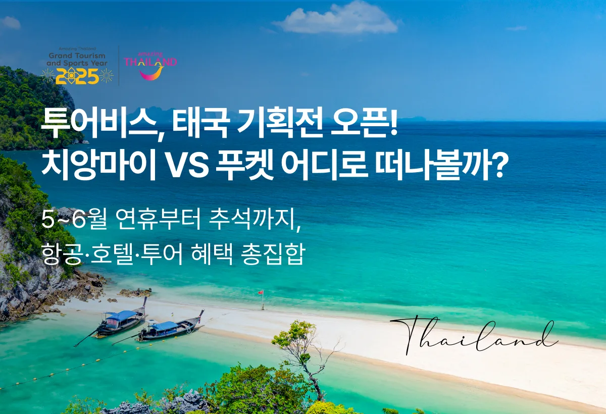 투어비스 단독, 치앙마이와 푸켓 맞춤 혜택 먼저 치앙마이와 푸켓으로 매일 운항하는 대한항공을 포함하여 아시아나항공, 진에어 등 전 항공사를 대상으로 해당 노선의 특가 항공권을 제공한다. 특히 투어비스 앱을 통해 항공권을 구매한 경우 한 달 이내 취소 시 투어비스 수수료가 전액 면제되는 파격 혜택도 마련되어 있다. 이 혜택은 5월 14일까지 예약 및 결제 시 적용되며 출발일에 제한이 없어 5~6월 연휴는 물론, 10월 추석 황금연휴 일정도 미리 준비할 수 있다. 또한 ▲멜리아 치앙마이 ▲반얀트리 푸켓 같은 추천 호텔과 ▲푸켓 안다만다 워터파크 입장권 ▲피피섬 스노클링 크루즈 일일 투어 등의 인기 투어&티켓을 포함한 여행 필수 상품을 회원 전용 특가로 제공하여 보다 합리적인 여행이 가능할 것으로 기대하고 있다.