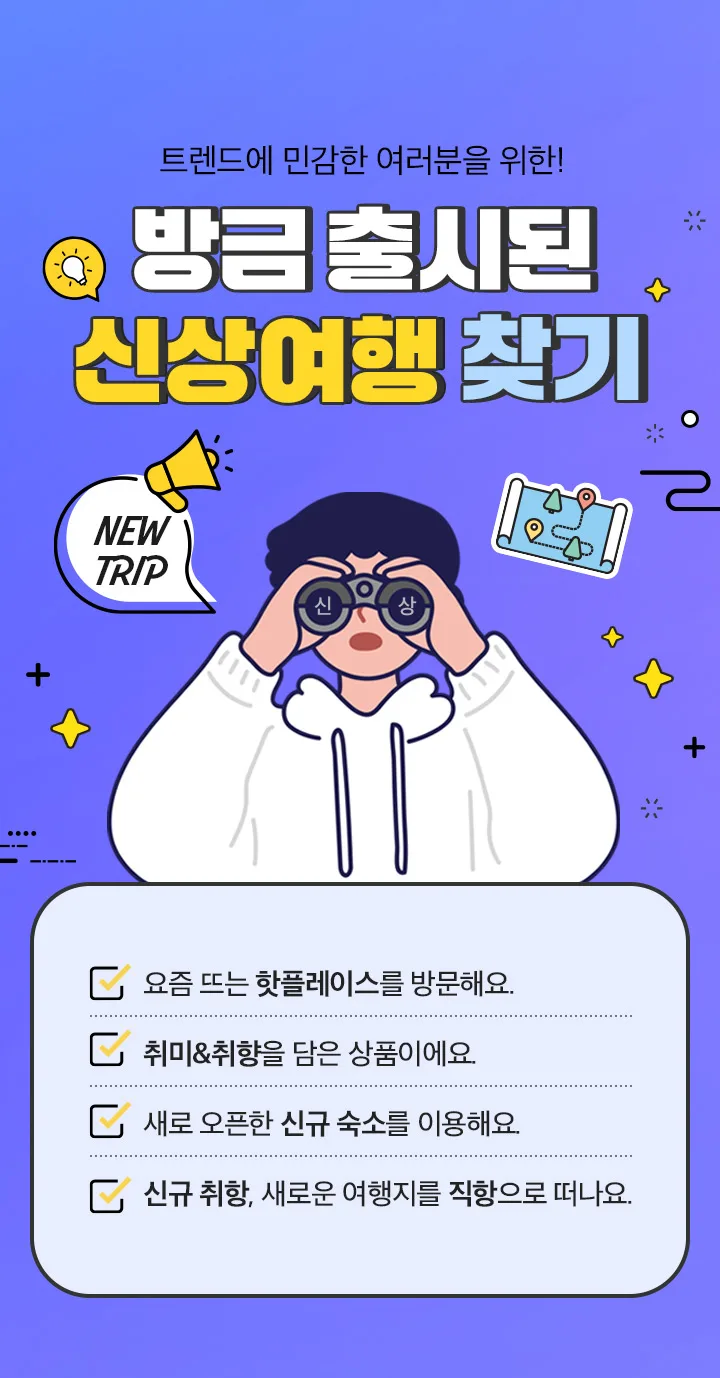 노랑풍선은 고객의 여행 취향 따라 자유롭게 상품을 고를 수 있는 '신상품 기획전'을 오픈했다.