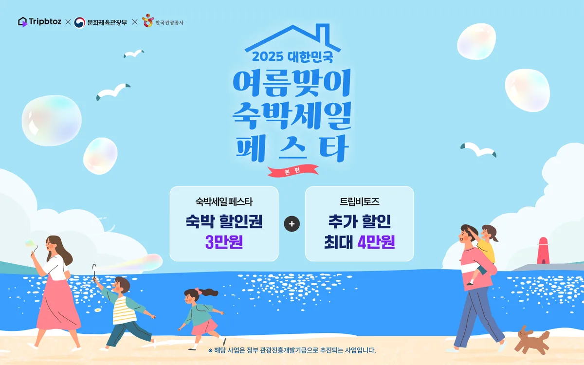국내 여행 수요가 높아지는 여름 시즌을 맞아, 트립비토즈가 ‘2025 숙박세일페스타’와 함께 역대급 할인 프로모션을 선보인다. 6월 2일부터 쿠폰 발급이 시작되며, 6월 5일부터 실제 투숙이 가능하다. 수도권을 제외한 전국 지역 숙소에서 사용 가능한 다양한 쿠폰과 추가 할인 혜택이 더해져 소비자 체감 할인 폭이 크게 확대될 것으로 기대된다.
