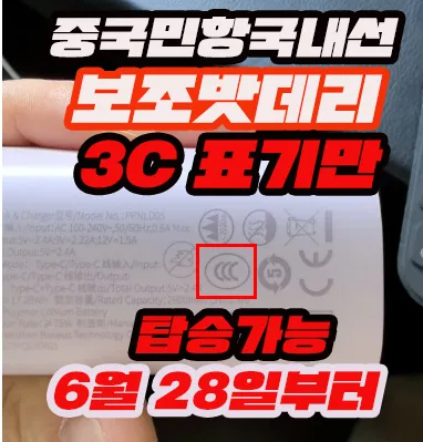 6월 28일부터, 3C 인증이 없는 보조배터리 휴대하면 항공기 탑승 금지