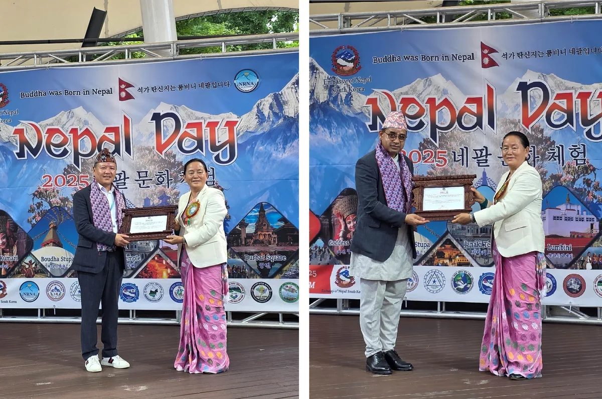 서울시관광협회 대의원이자 ㈜네팔투어 대표인 K.P 시토울라와 협회 이사이자 관광식당 ‘에베레스트’를 운영하는 구릉헐커만 대표가 지난 7월 20일(일) 마로니에 공원에서 열린 ‘네팔의 날 2025(Nepal Day 2025)’ 공식 행사에서 네팔 문화 홍보 및 교류 활성화에 기여한 공로를 인정받아 감사패를 수여받았다.