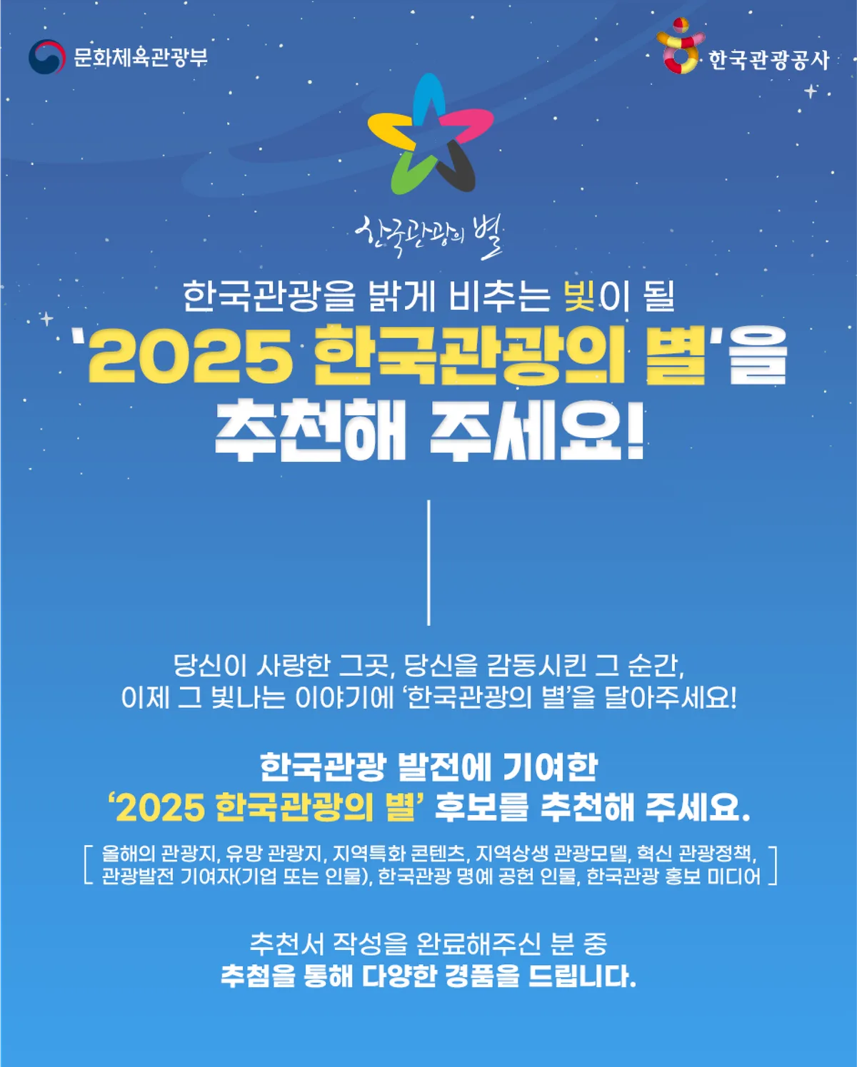 2025‘한국관광의 별’대국민 후보 추천 이벤트 실시(7.23~8.6)