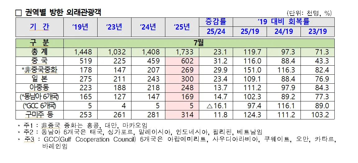 2025년 7월 한국관광통계