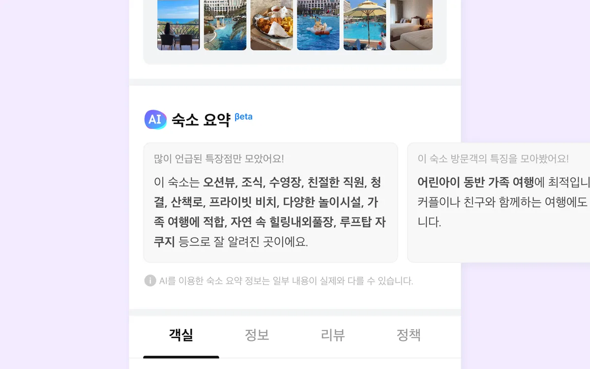 이번 서비스는 여행자가 직접 올린 영상과 리뷰 데이터를 인공지능으로 분석해 숙소 평가에 반영하는 방식으로, 보다 정교하고 신뢰도 높은 맞춤형 추천을 제공한다.
