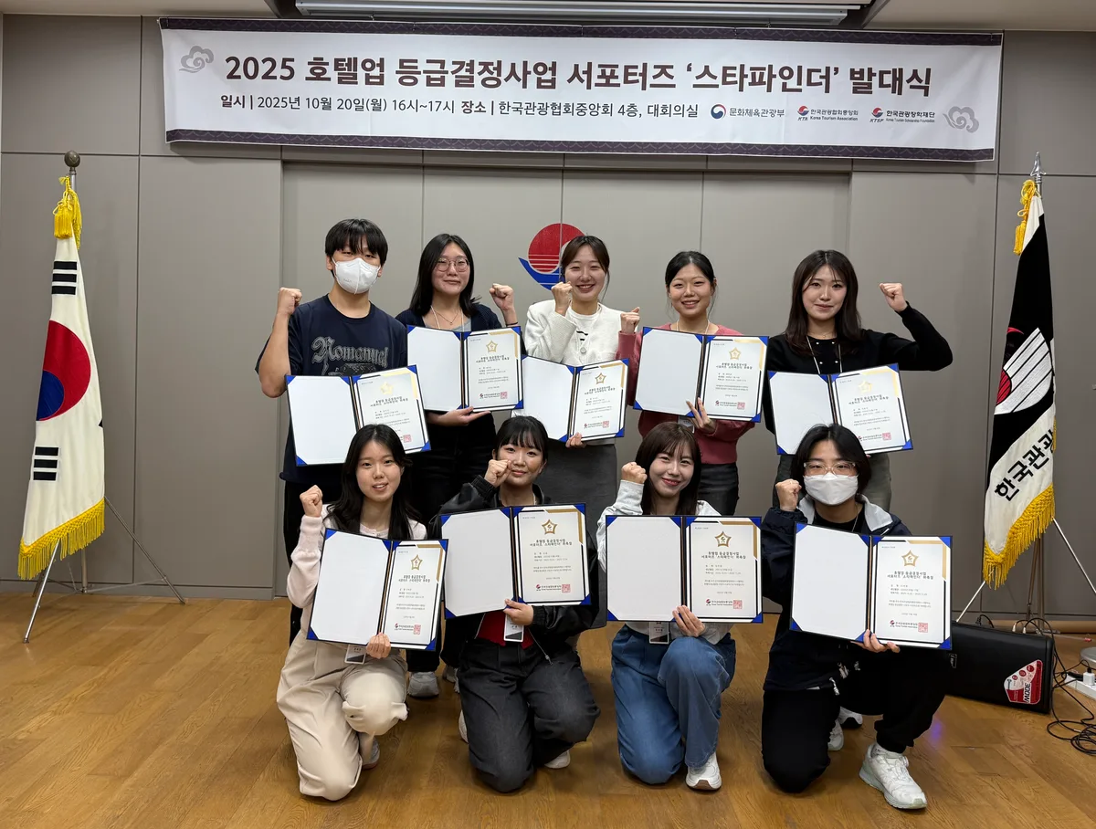 2025년 처음으로 선발된 서포터즈「스타파인더(Star Finder)」는 호텔업 등급제도에 높은 관심을 보인 대학(원)생 약 343명이 지원한 가운데, 34.3:1이라는 치열한 경쟁을 거쳐 최종 10명이 선발되어 이날 공식 출범했다. 제1기 서포터즈는 올해 연말까지 ▲호텔업 등급평가 참관, ▲3~5성급 호텔 숙박 체험 등 다양한 온‧오프라인 활동을 통해 호텔업 등급제도의 필요성과 의의를 직접 체험하고, 그 경험을 사회관계망서비스(SNS) 콘텐츠를 통해 생생하게 전달할 예정이다.