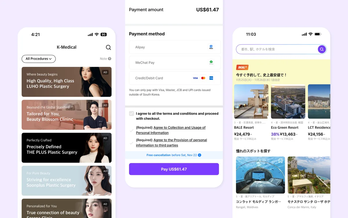 또한 다국어 결제수단 확대는 방한 관광객에게 직접적인 편의를 제공한다. 위챗·알리페이 등 글로벌 결제 방식을 추가해 현지 사용자들이 복잡한 결제 과정 없이 예약을 진행할 수 있도록 환경을 구축했다. 영상 및 트립톡 번역 기능도 도입하여 실제 시술 후기를 다양한 언어로 확인할 수 있어 방한 관광객의 의사결정을 돕는다.
