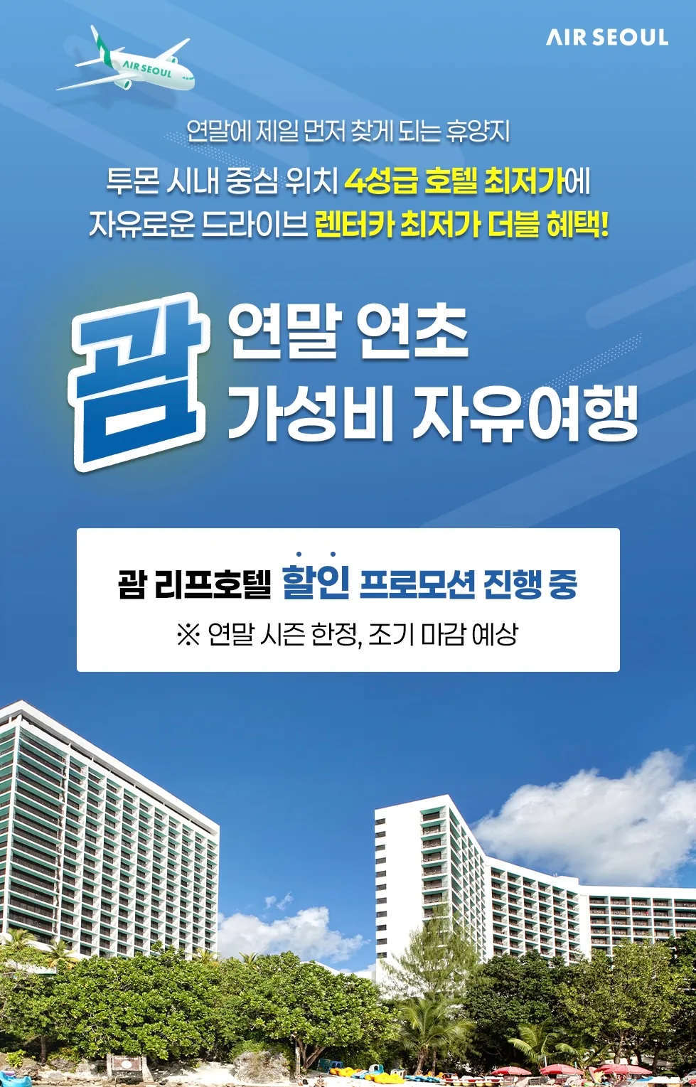에어서울이 본격적인 겨울 추위를 피해 따뜻하게 새해를 맞이할 수 있는 휴양지 여행으로 ‘괌’을 제안한다.
