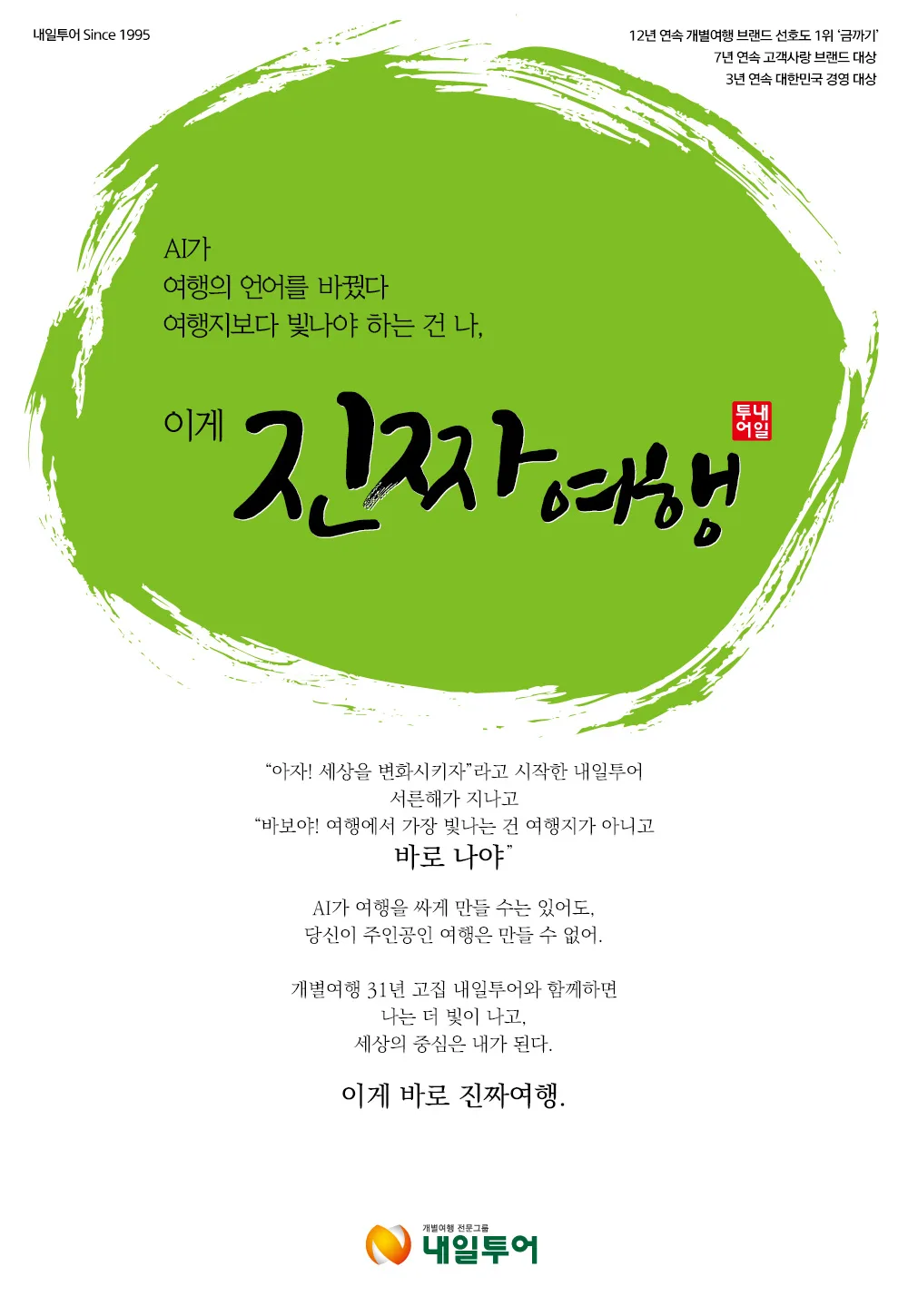 이진석 내일투어 대표는 “AI가 정보를 더 쉽게 만들었지만 여행의 만족은 결국 사람의 취향과 목적을 얼마나 정확히 반영하느냐에 달려 있다”며 “내일투어는 31년의 노하우로 고객 한 분 한 분의 여행을 설계해 ‘이게 진짜여행’이라는 가치를 실감할 수 있도록 하겠다”고 전했다.