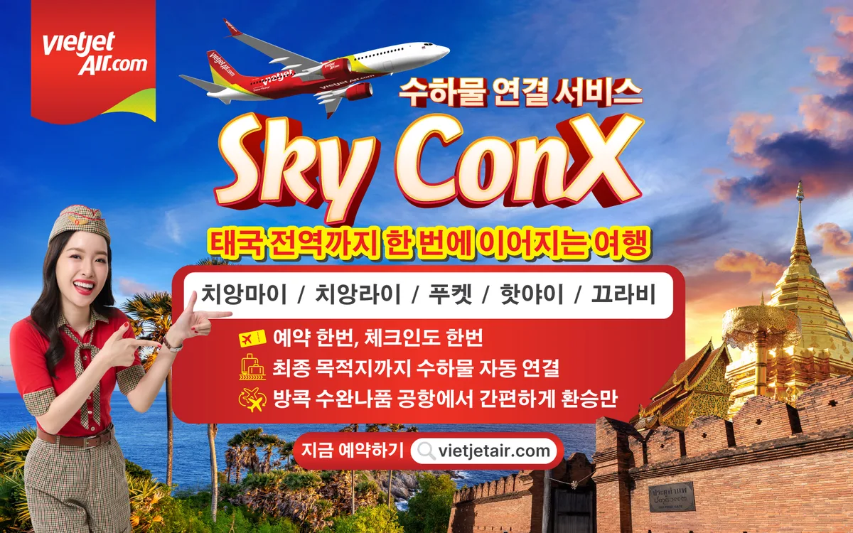 2025년 인천–방콕(수완나품) 노선 취항에 이어, 비엣젯타일랜드는 Sky ConX (수하물 자동 연결 서비스)를 도입해 태국 국내 주요 도시로의 환승 편의성을 한층 강화했다