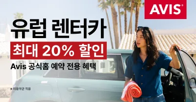 예약 기간은 2026년 3월 16일까지며, 차량 픽업 기간은 2026년 12월 12일까지로 추석 연휴와 장기 여행 일정까지 폭넓게 커버한다. 유럽 지역 내 참여 지점에서 이용 가능하며, 에이비스렌터카 예약 시 AWD 코드 ‘E879600’을 입력하면 할인 혜택이 적용된다.
