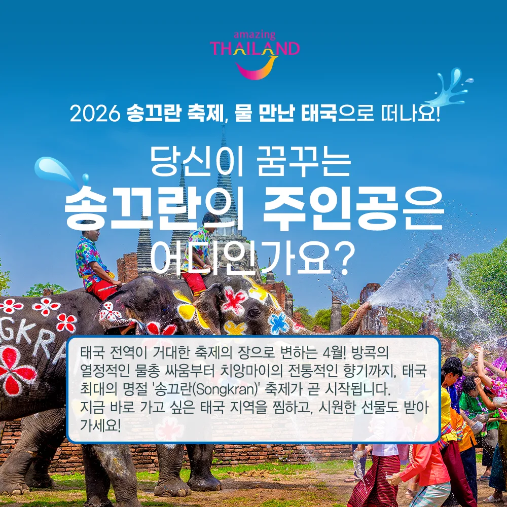 태국 전역이 거대한 축제의 장으로 변하는 4월! 방콕의 열정적인 물총 싸움부터 치앙마이의 전통적인 향기까지, 지역마다 각기 다른 모습으로 펼쳐지는 태국 최대의 명절 '송끄란(Songkran)' 축제가 곧 시작된다.