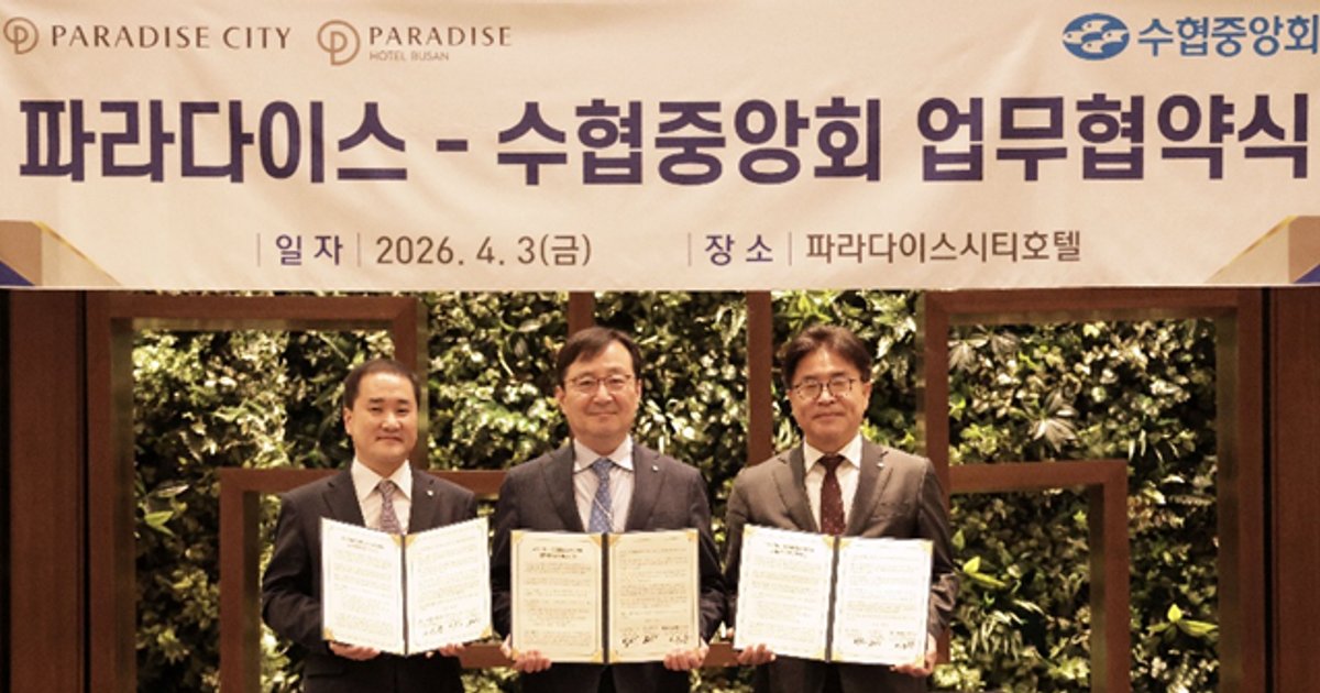 파라다이스세가사미와 파라다이스 호텔 부산이 수협중앙회와 손잡고 지속 가능한 친환경 수산물 공급망 구축에 나선다. 지역 수산물 소비를 활성화하고 ESG 경영을 실천한다는 계획이다.