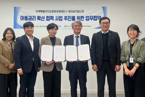 전북특별자치도문화관광재단(대표이사 이경윤, 이하 재단)이 14일 오후 2시, 전주한옥마을 내 문화공간 하얀양옥집에서 국제아동권리NGO 세이브더칠드런 서부지역본부(본부장 김동관)와 아동권리 인식 확산을 위한 업무협약을 체결했다.