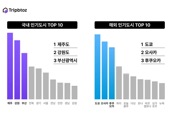 국내 예약에서는 제주특별자치도가 전체의 20.2%로 1위를 기록하며 부동의 인기를 입증했다.
