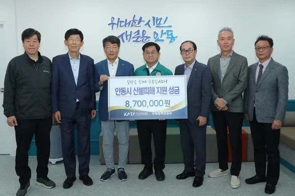 한국여행업협회(회장 이진석, 이하 KATA) 국제협력위원회(위원장 추신강)에서는 4월 30일 경북 안동시청 회의실에서 산불피해 지역에 대한 성금 전달식을 가졌다.