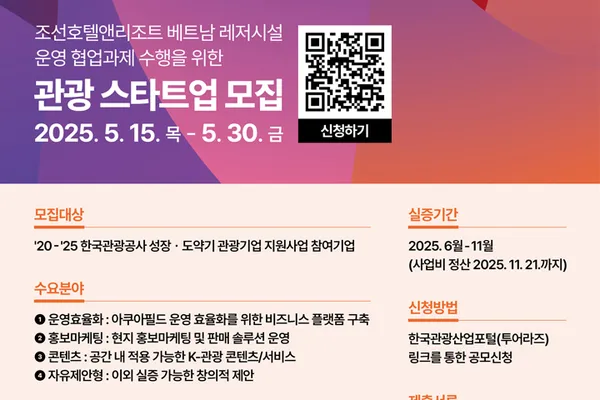 사업 운영ㆍ홍보마케팅ㆍK-관광콘텐츠 분야 등 관광기업 최대 4개사 공모(~5.30)