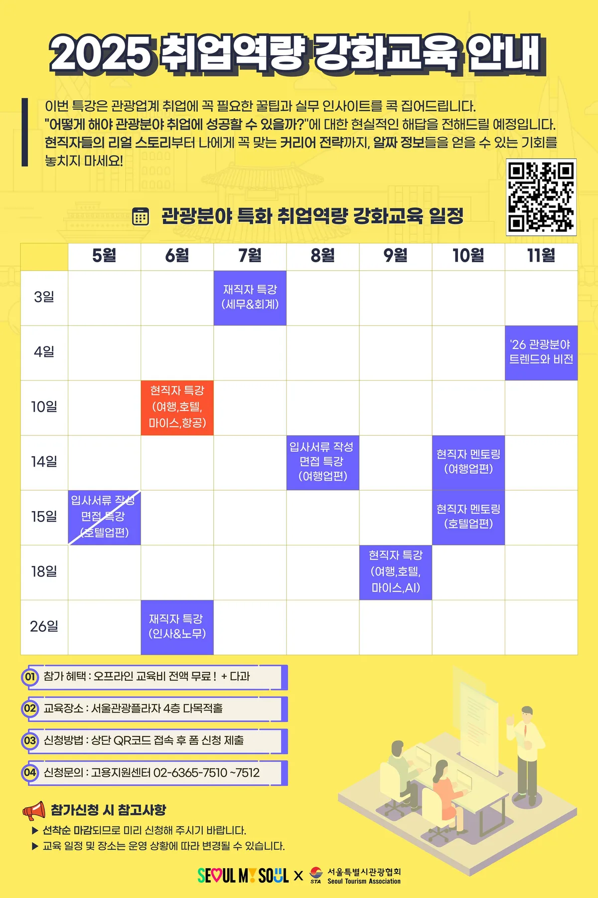 서울특별시관광협회(회장 조태숙)에서 운영하는 서울관광고용지원센터는 오는 6월 10일(화), 관광산업 분야 취업을 준비하는 구직자들을 위한‘현직자 취업역량강화 특강’을 마련했다.