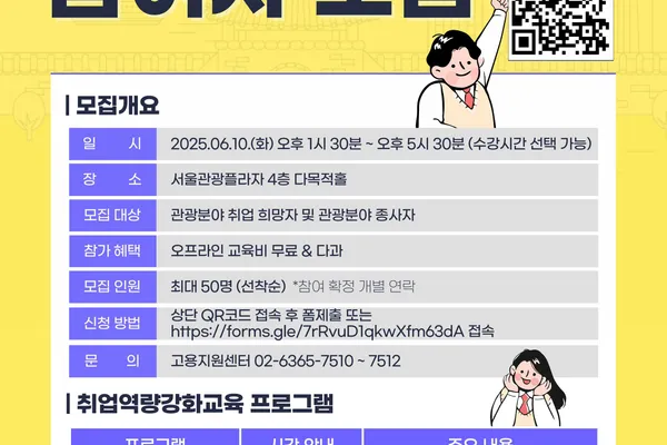 서울관광고용지원센터 관광산업분야 취업 희망자 대상... 5월19일부터 선착순 50명 접수