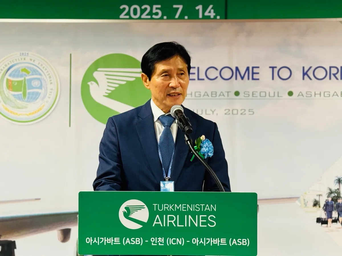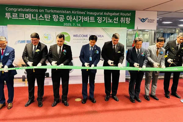투르크메니스탄 국영항공사 투르크메니스탄항공이 7월 14일 인천~아시가바트 직항 노선을 신규 취항하며 한국과 투르크메니스탄 간 경제·문화 교류의 새로운 장을 열었다.