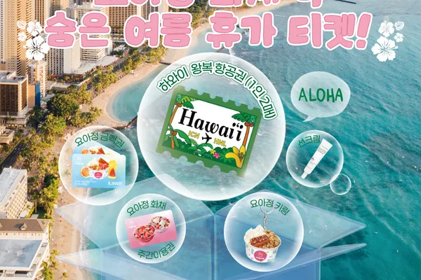 티켓에 삽입된 QR코드를 통해 응모를 완료한 소비자 중 추첨을 통해 ▲하와이 왕복 항공권(1인 2매) ▲요아정 화채 주간 이용권 ▲요아정 금액권 ▲선크림 ▲요아정 키링 등 풍성한 경품이 제공된다. 당첨자는 8월 20일 개별 발표된다.