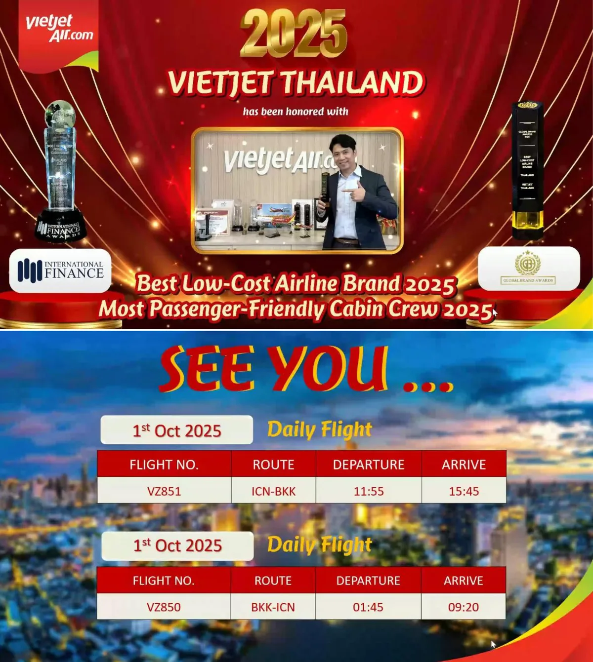 타이비엣젯항공(Thai VietJet Air)은 2025년 10월 1일부터 인천–방콕 노선을 정기 운항함에 따라, 이를 알리기 위한 온라인 미디어 세미나를 8월 14일 개최했다.