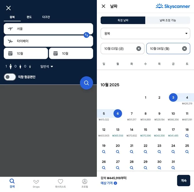 스카이스캐너 여행 전문가 제시카 민(Jessica Min)은 “응답자 4명 중 1명(24%)은 원하는 옵션 예약에 어려움을 느껴 명절 연휴 여행을 취소하거나 변경한 경험이 있다”며 “성수기 여행 예약에 어려움을 느낀다면 스카이스캐너 앱에서 항공권을 검색할 때 ‘특정 날짜’를 선택해 날짜별 항공권 평균가를 비교하고 여행 일정을 앞뒤로 조정함으로써 보다 합리적인 가격의 상품을 검색할 수 있다”고 말했다.