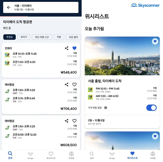 아울러, “여러 옵션 중 결정하기 어렵다면 ‘하트’ 모양 아이콘을 눌러 원하는 옵션을 모두 ‘위시리스트’에 담아 한눈에 비교할 수 있다”라며 “스카이스캐너를 활용해 검색과 비용 부담은 덜고 마음은 풍요로운 한가위를 보내시길 바란다”고 덧붙였다.