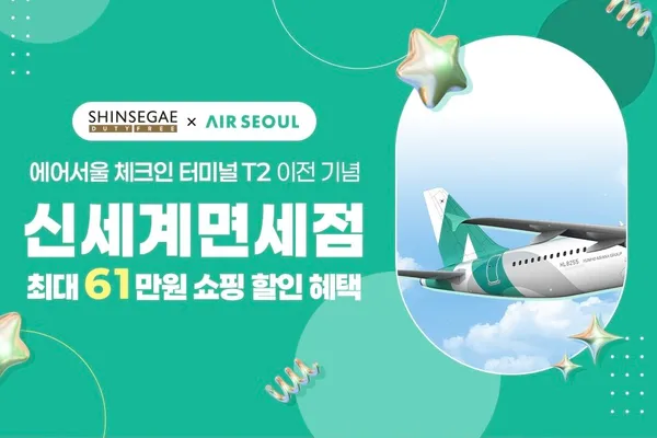 이와 더불어 에어서울 단독 혜택으로 신세계면세점 최대 7만 원 할인 쿠폰을 제공하며, 해당 쿠폰은 인천국제공항 에어서울 체크인 카운터(E1~E10)에서 수령할 수 있다.