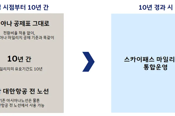 통합 후 10년간 아시아나항공 마일리지 별도 유지하며 대한항공 항공편 이용 가능…