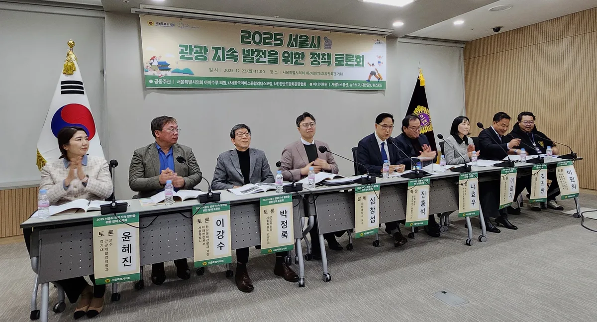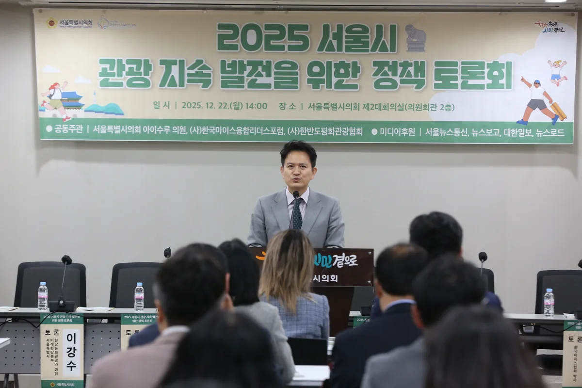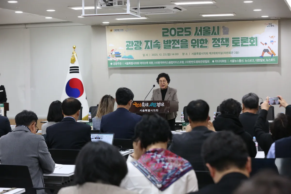 서서울특별시의회 문화체육관광위원회 부위원장이자 다문화위원회 위원장인 아이수루 서울시의원이 주관한 「2025 서울시 관광 지속 발전을 위한 정책 토론회」가 12월 22일(월) 오후 2시, 서울시의회 제2대회의실에서 약 3시간 가량 성황리에 개최됐다.