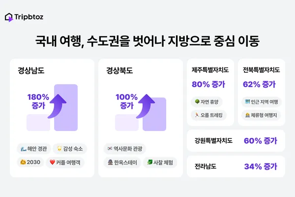 국내 여행 시장이 뚜렷한 성장세와 함께 새로운 전환점을 맞고 있다. 여행 수요의 중심이 수도권에서 지방으로 이동하며, 국내 여행 트렌드 전반이 빠르게 재편되고 있다.
