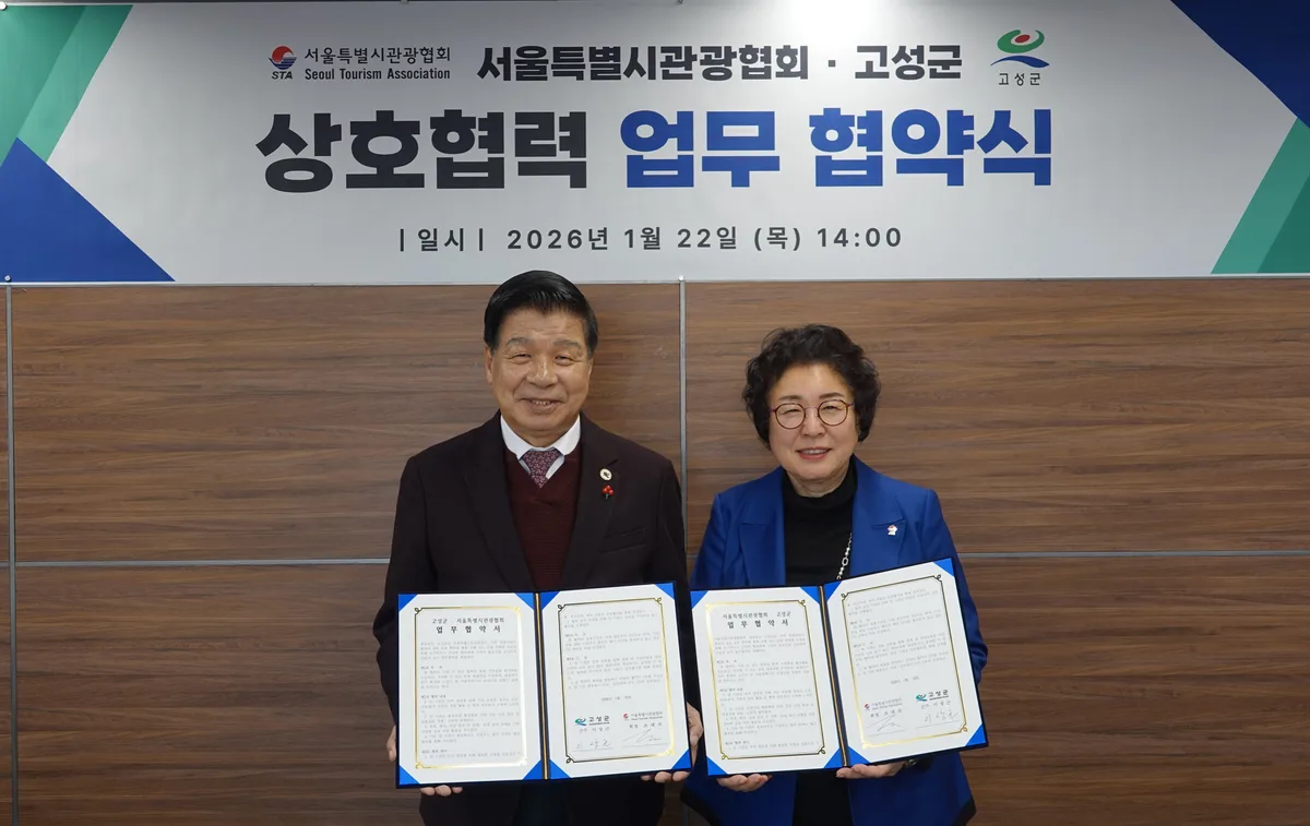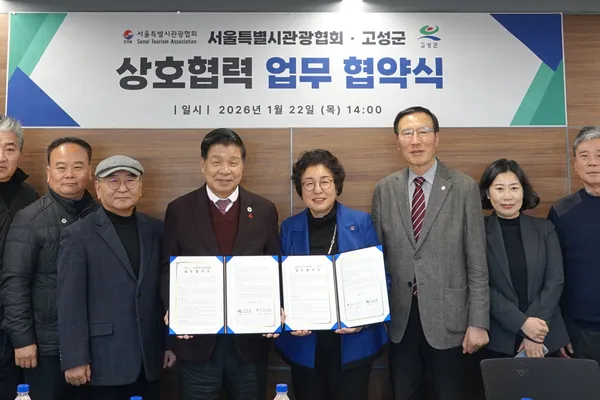 서울시관광협회(회장 조태숙)와 경상남도 고성군(군수 이상근)이 지역 관광산업 발전과 상호 교류 확대를 위해 관광협력 업무협약을 체결했다.