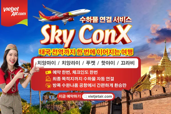 2025년 인천–방콕(수완나품) 노선 취항에 이어, 비엣젯타일랜드는 Sky ConX (수하물 자동 연결 서비스)를 도입해 태국 국내 주요 도시로의 환승 편의성을 한층 강화했다