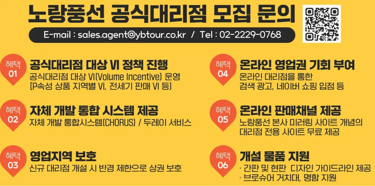 노랑풍선이 모여행전문지를 통해 공식대리점 모집하는 광고
