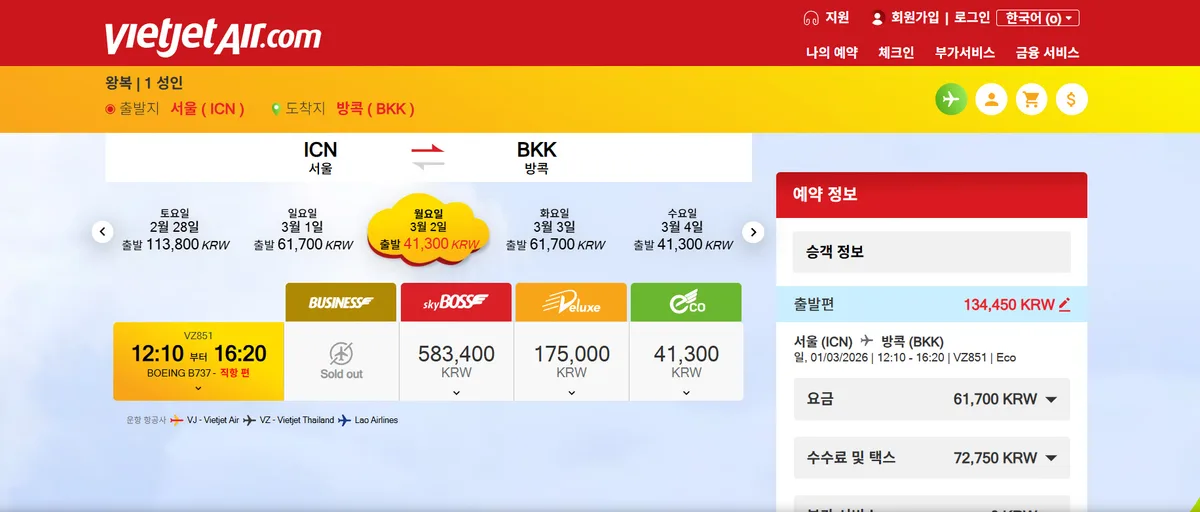 또한 비엣젯타일랜드는 서울–방콕 노선을 매일 직항으로 운항하며, 편리한 스케줄을 제공한다.