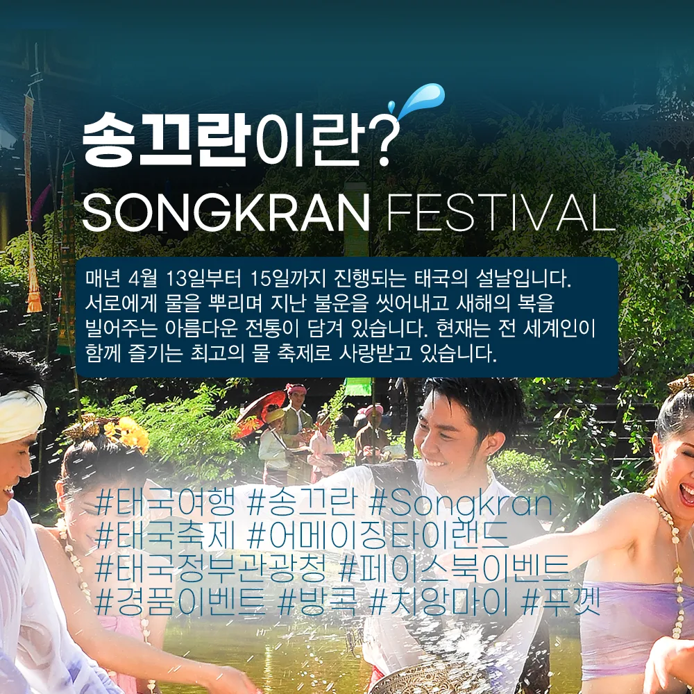 송끄란을 맞이하여 태국관광청 페이스북에서는 온라인 이벤트를 진행한다.